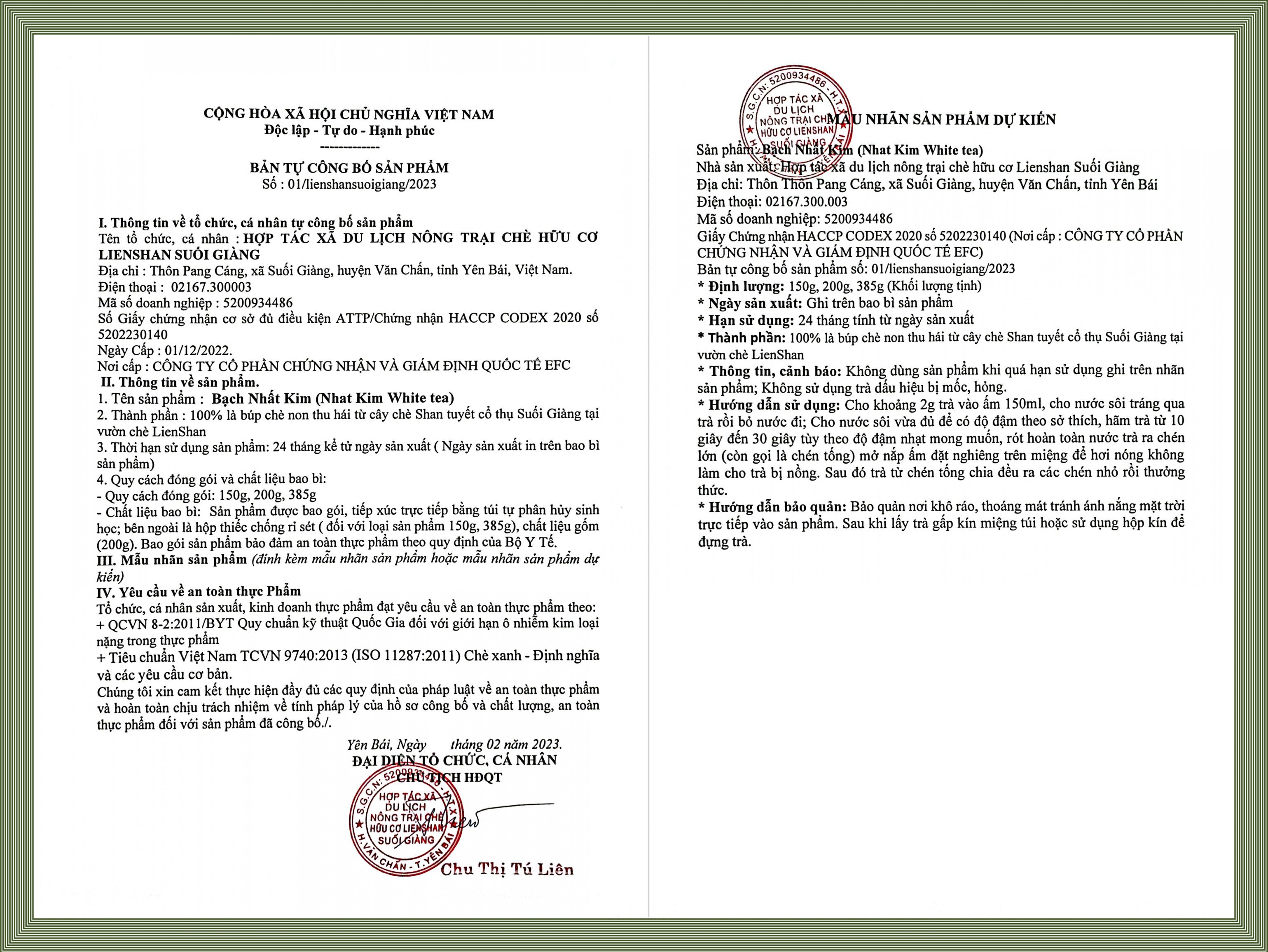 • Chủng loại cây chè: Độ tuổi cây chè khai thác : Từ 80 năm tuổi trở lên.