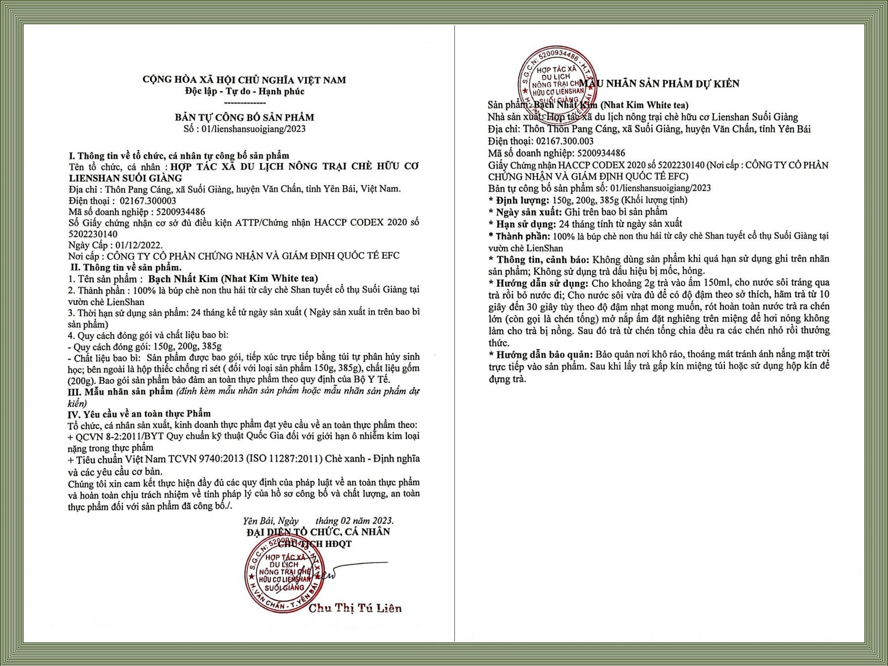 • Chủng loại cây chè: Độ tuổi cây chè khai thác : Từ 80 năm tuổi trở lên.